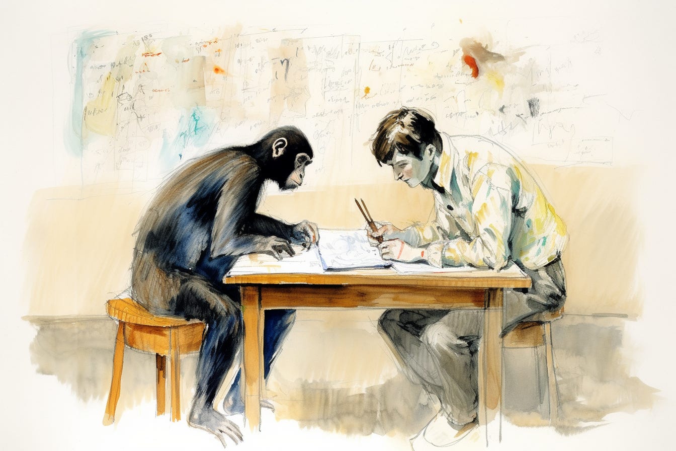 I appreciate this, and realize that to understand the big story of our cognition, I should really get a clearer picture of our current understanding of chimp thinking.