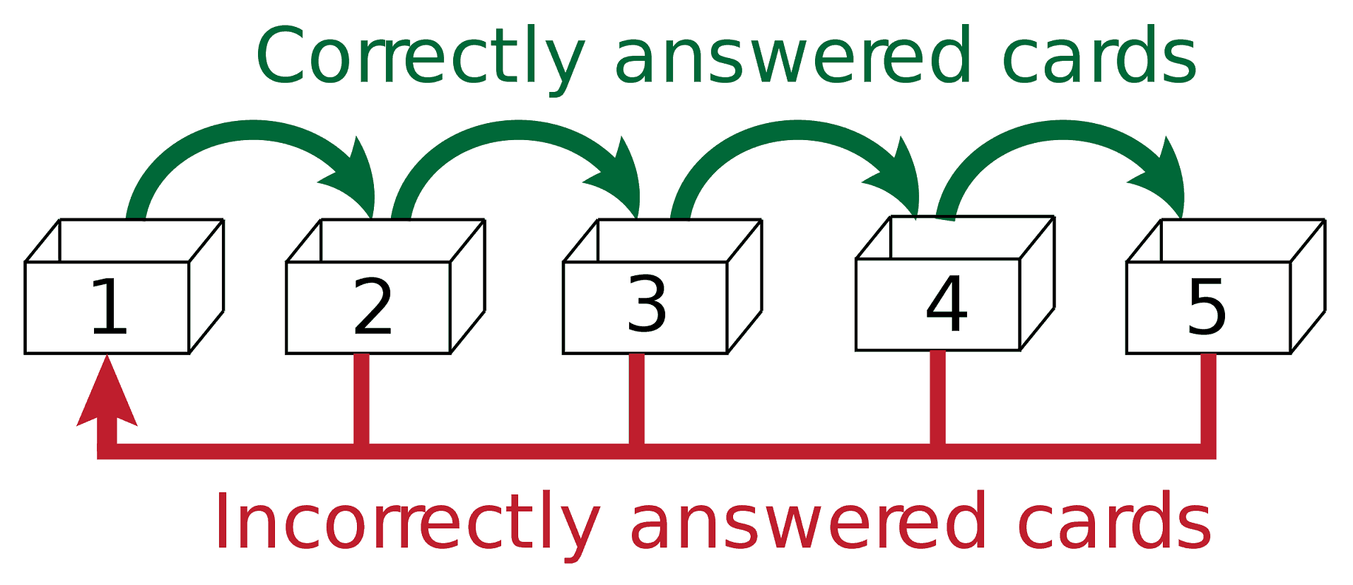 When you first put a card in, it goes in “Level 1”. When you quiz yourself on it, just follow this rule:
