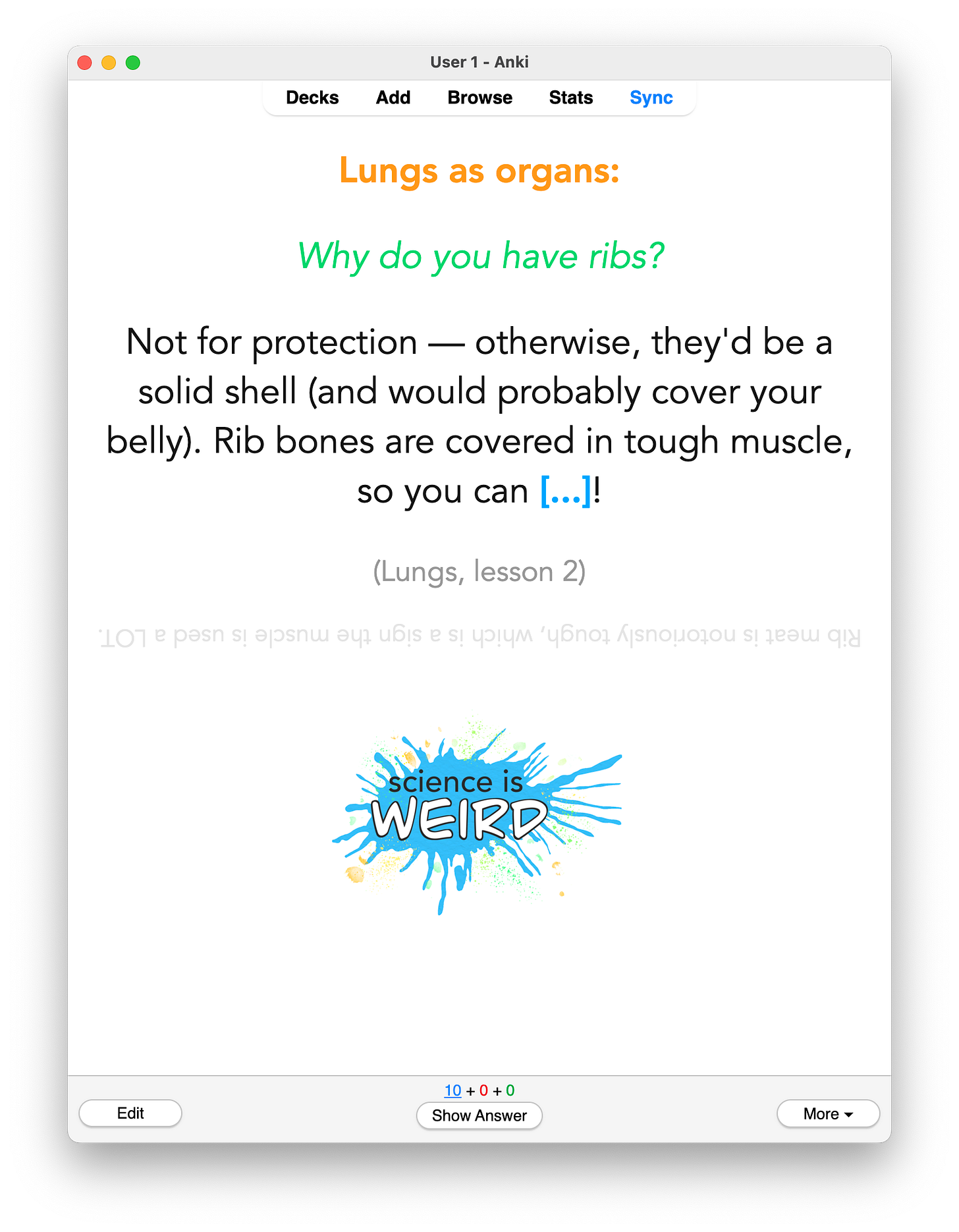 Conceptual scientific understanding, too, can be anchored with shiny facts about the world. Not for nothing does my team make about a dozen Anki cards for each Science is WEIRD lesson: