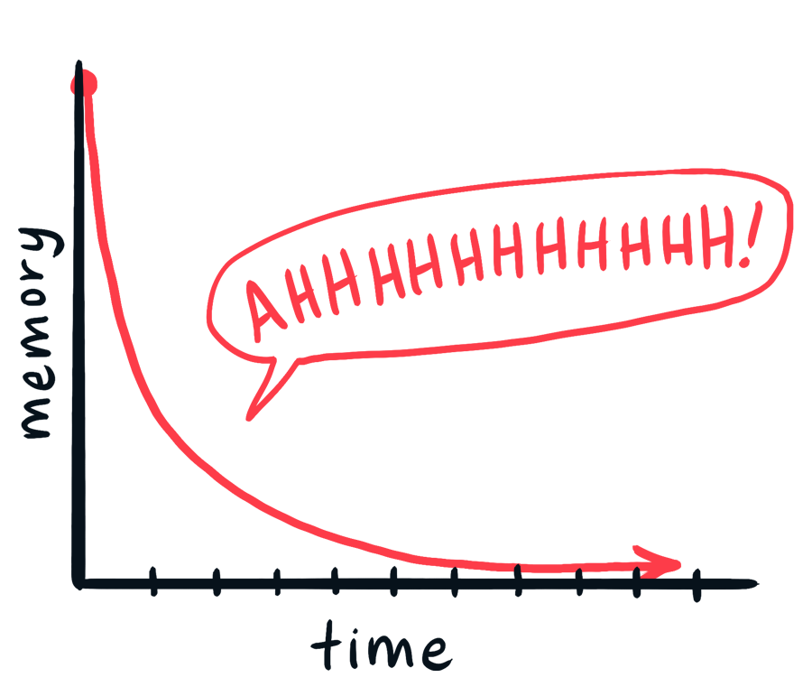 The tl;dr is that we forget almost everything we learn. This is bad! It’s the undoing of all the work we put into education. Forgetting is, the cognitive psychologists say, the biggest problem in education: