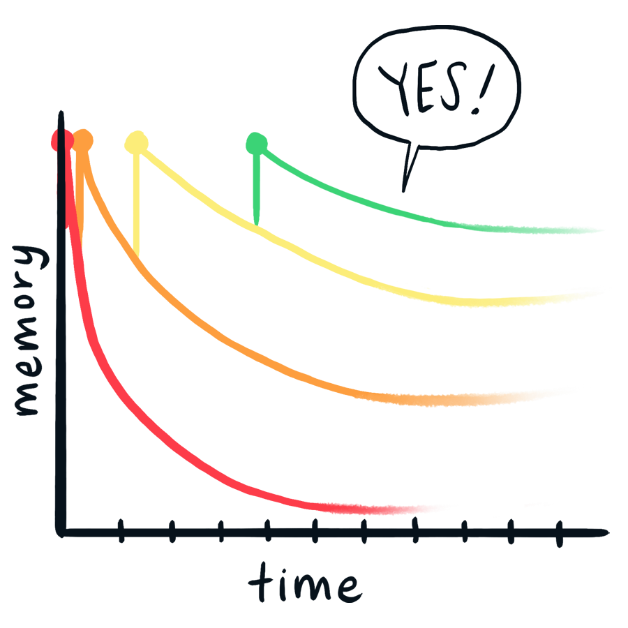 Does that sound like a lot? It’s not: each of these reviews takes just a few moments. That means that with a sum of just a few minutes of properly-timed review, you can remember anything you want for the entire rest of your life.
