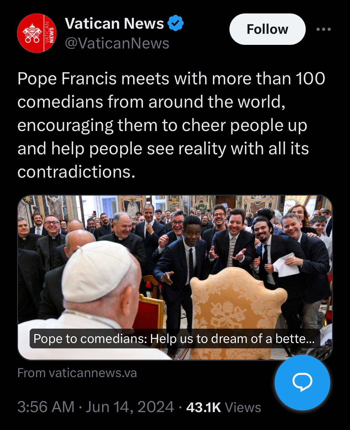 BTW, its worth noticing that there are a lot of subsets of comedy besides jokes. Physical Comedy, Over-the-top (as opposed to witty) and more. Clowning made many types of comedy that are much more in-life accessible to me naturally. Stand-up comedy is one of the less natural comedic expressions. I can talk about this for hours.
