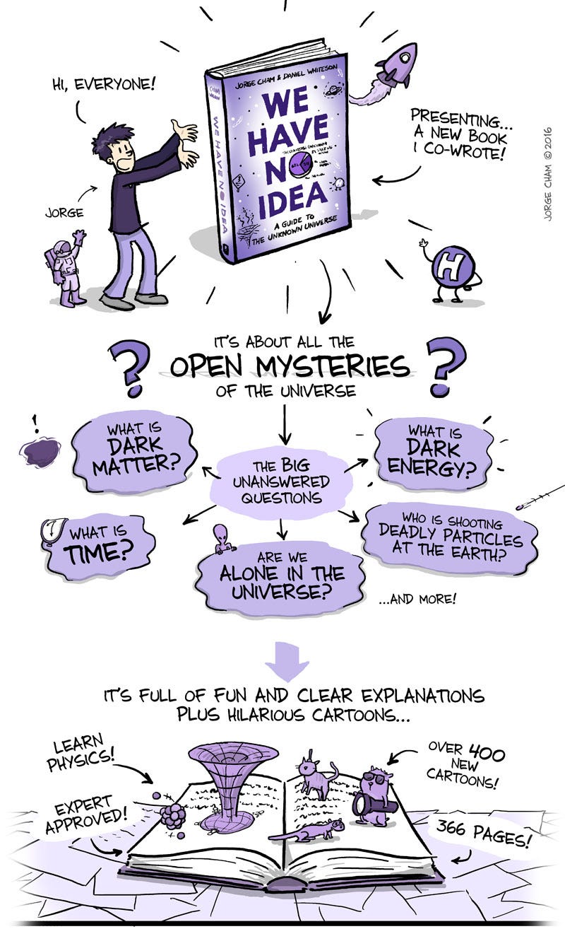 The joy of The Shrink Ray° is that it thrusts us viscerally into mystery. “The physicists Murray Gell-Mann struggled to understand what protons were made of” can be boring, but imagining yourself shrinking down to one-quadrillionth of your size and standing next to a single proton as you squint and see some things buzzing around violently inside… well, it’s less boring! (Ditto with expanding to be one octillion times your original size, and standing next to the ball of the entire observable Universe, which comes up to your chest. “What’s outside the observable Universe?” suddenly becomes a mystery with teeth!)