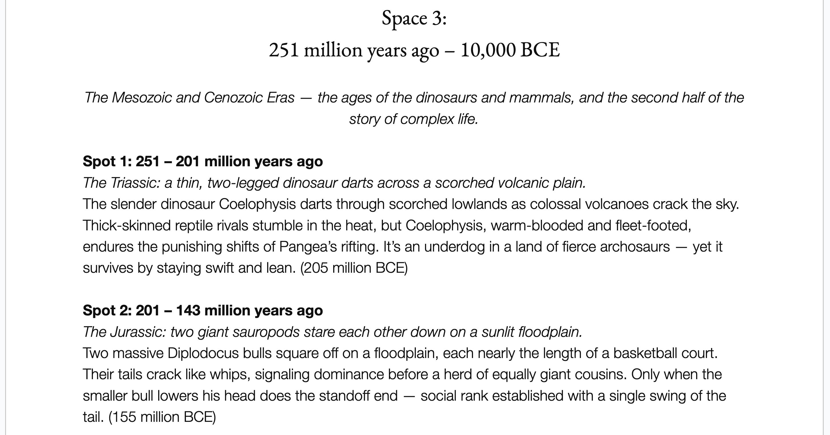 And here’s one from prehistory (which doesn’t give three stories for each spot, but who needs that when you have dinosaurs):